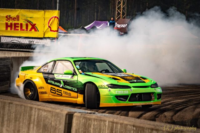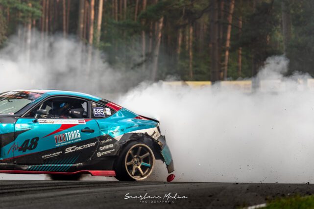 RIGA, LATVIA June 30th 2018: Drift car in motion. Photo taken on the HGK Drift Challenge event shown on June 30th 2018 on Bikernieki raceway